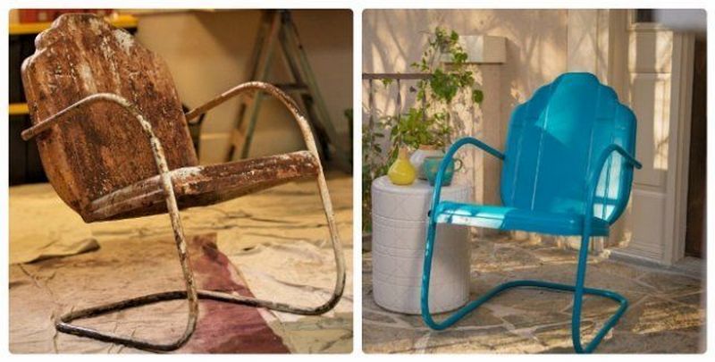 В отличие от древесины, металлические стулья более долговечны. При поломке их сложнее отремонтировать, а во время реставрации изделие нужно защитить только от одного «врага» — коррозии. Для металла покупают специальную грунтовку и краску, которые обладают антикоррозийным эффектом. Эмали наносят в несколько слоев, а бесцветными составами покрывают в три-четыре слоя. Не рекомендуют использовать стулья и табуреты с металлическим каркасом на кухнях и в ванных, где уровень влажности систематически повышается. Чтобы снять старый слой краски или лака, для металла идеально подходит метод химической обработки, так как материал не боится агрессивных средств.