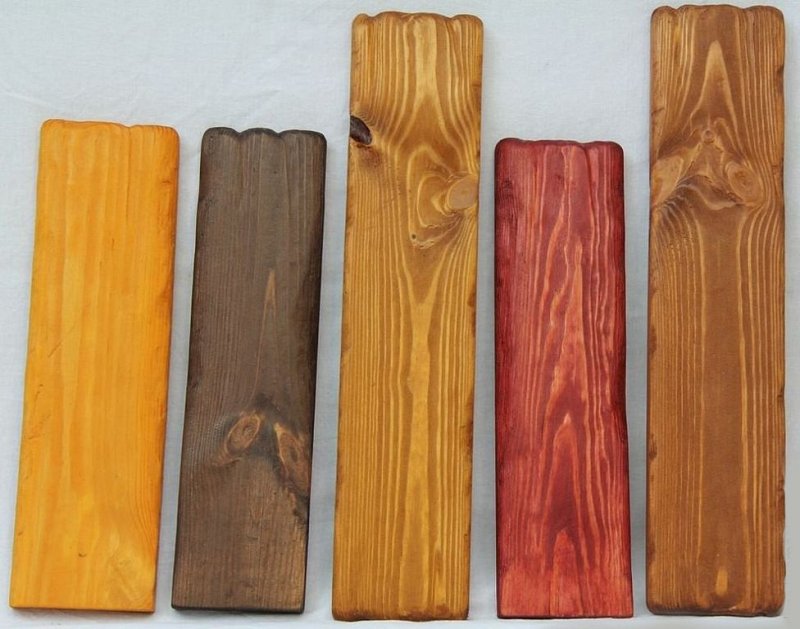 При выборе смеси проводят пробную окраску дерева. На полученный оттенок будет влиять природный цвет, сорт материала. Качество, плотность растворов имеет огромное значение. Одинаковые по номерам составы от разных производителей могут давать оттенки разной насыщенности и глубины.