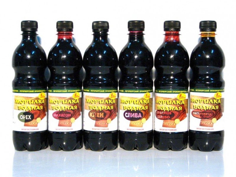 Морилку на водной основе можно использовать снаружи и внутри жилого помещения. Она не имеет неприятного запаха, абсолютно не токсична. Состав имеет небольшой расход, легко наносится. Из недостатков можно отметить плохую водостойкость. После нанесения поднимаются волокна древесины, что открывает путь к влаге. Окрашенная поверхность долго сохнет – 12-15 часов. Не желательно применение для смолянистых пород древесины.