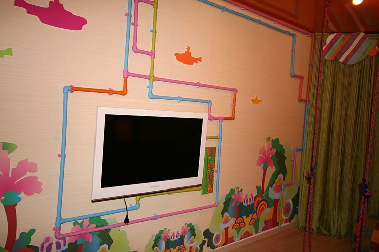 стилизация под интерьер. Чтобы туалетная разводка или разводка в спальне с красочной плиткой, обоями минимально выделялась, рекомендуется дополнять однотонную покраску тематическими узорами, орнаментом или рисунками.