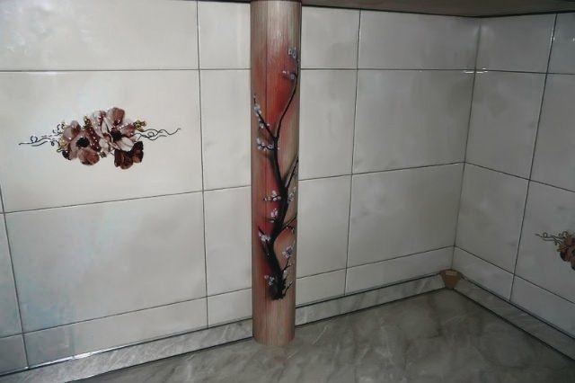 Для создания целостного интерьера владельцам нужно позаботиться обо всех деталях оформления разных помещений жилья. Особое внимание им следует уделить закрытию непривлекательных коммуникаций. Мы рассмотрели самые удобные и практичные варианты, которые расскажут, как задекорировать трубу или вытяжку. В работе могут использоваться подручные материалы или специальные строительные панели, листы. В зависимости от места расположения коммуникационных развязок могут использоваться разные типы декора. Немаловажно помнить и о требованиях государственных служб, которые могут ограничивать количество и тип решений для разных узлов. Внимательно рассмотрев всевозможные виды декорирования, хозяева смогут подобрать допустимый способ украсить коммуникации, не нарушая общего стиля оформления жилых и нежилых помещений в доме. Содержание Подготовка к работе Особенности декора Покраска Декупаж Используем бамбук Драпировка тканью Веревками Витражи и мебельные карнизы Короб из гипсокартона Короб из ламината, мдф Фальшстена Заключение Подготовка к работе Перед проведением работ с созданием фальшстен, коробок следует позаботиться о самих коммуникациях. Поврежденные элементы или старые соединяющие узлы следует заменить новыми. Так, получится предупредить проблемы с их состоянием в будущем. Над обогревательными элементами обязательно нужно установить небольшие люки вентиляции. Это исключит вероятность скопления влаги, некачественный обогрев помещений. Вокруг или под водяными трубопроводами следует обеспечить влагоизоляцию. Для этого могут использоваться тонкие рулонные материалы или более плотные, нарезанные по размерам коробок плиточные аналоги. Их применение исключит скопление влаги и разрушение отделки, появления плесени. Что касается старых металлических коммуникаций их предварительно стоит зачистить наждачкой и покрыть новым слоем краски (устойчивой к высоким температурам, влаге). Особенности декора Прежде чем обыграть коммуникации, следует учесть некоторые особенности и требования, предъявляемые к ним. Например, газовая труба на кухне не может полностью закрываться. Лучшим решением для нее станет украшение или покраска. В жилых помещениях допускается монтирование фальшстен и коробок. При необходимости их можно дополнить сеткой или решеткой для вентиляции. Для отделки и сборки могут применяться любые материалы: они не будут подвергаться особым воздействиям. А вот в ванной необходимо использовать только те материалы, которые стойко переносят повышенную влажность. К ним относится вагонка, влагостойкие гипсокартонные листы. Для закрытия вертикальных коммуникаций можно использовать разные решения: обшивка и украшение не приведут к уменьшению пространства. А вот горизонтальные коммуникации следует закрывать только после тщательного рассмотрения доступных решений. Ведь даже небольшая обшивка может привести к ограничению свободного места. Покраска Броско и необычно оформить коммуникации в любом помещении жилья поможет их стилизация с использованием краски. Решения в таком направлении можно условно разделить на следующие виды: создание акцента. Отлично подходит для систем отопления в спальнях и залах. К примеру, на фоне голубых, бирюзовых, фиолетовых стен броско будут смотреться желтые и оранжевые бат