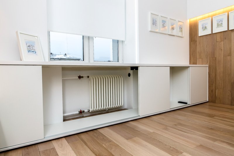 Перед проведением работ с созданием фальшстен, коробок следует позаботиться о самих коммуникациях. Поврежденные элементы или старые соединяющие узлы следует заменить новыми. Так, получится предупредить проблемы с их состоянием в будущем. Над обогревательными элементами обязательно нужно установить небольшие люки вентиляции. Это исключит вероятность скопления влаги, некачественный обогрев помещений. Вокруг или под водяными трубопроводами следует обеспечить влагоизоляцию. Для этого могут использоваться тонкие рулонные материалы или более плотные, нарезанные по размерам коробок плиточные аналоги. Их применение исключит скопление влаги и разрушение отделки, появления плесени. Что касается старых металлических коммуникаций их предварительно стоит зачистить наждачкой и покрыть новым слоем краски (устойчивой к высоким температурам, влаге).