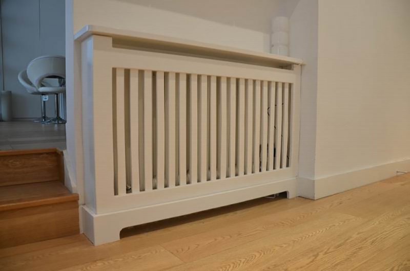 Сборка конструкций из древесных плит и подобных материалов подходит для коммуникаций, расположенных над плинтусами, идущими к подвалу. Их основу следует собирать из реек. Применение бруса, досок позволит быстро изготовить прочный каркас, дополняемый поднимаемой дверкой из МДФ или фиксированным верхом. С помощью реек можно собрать полностью съемную конструкцию. Сверху ее можно закрыть ламинатом. Размеры и материалы разных типов коробок определяются индивидуально. Применение реек и ламината приведет к значительным затратам. Древесные плиты, фанера обойдутся дешевле, но и их внешний вид будет более простым. Поэтому такой тип коробок рекомендуется изготавливать для помещений, в котором не нужна строгая стилизация. Применение дорогого ламината преимущественно для помещений с выделенным стилистическим направлением (к примеру, модерн, прованс, скандинавский).