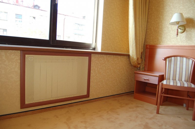 нейтральное оформление. Для такого способа краска должна подбираться в тон использовавшейся отделке. Оптимальное решение для коммуникаций, расположенных перед однотонными обоями, краской, плиткой.