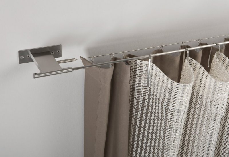 Гардины для занавесок монтируются к стене над оконным проемом либо непосредственно на потолок. Последний вариант позволяет закрыть шторой полностью всю стенку – от потолка до пола, без зазоров, без разделения пространства по горизонтали. Потолочные гардины выполняются из: