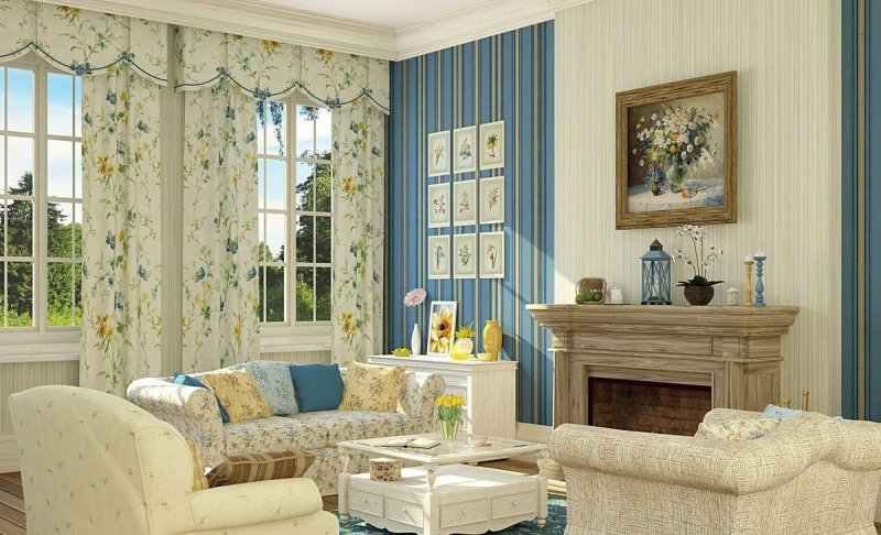 прованс – предпочтительны светлые натуральные ткани с цветочными принтами, занавески выполняются преимущественно короткими;