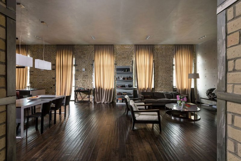 лофт – шторы здесь нежелательны, но если без них не обойтись, допустимы прозрачные, полупрозрачные варианты;