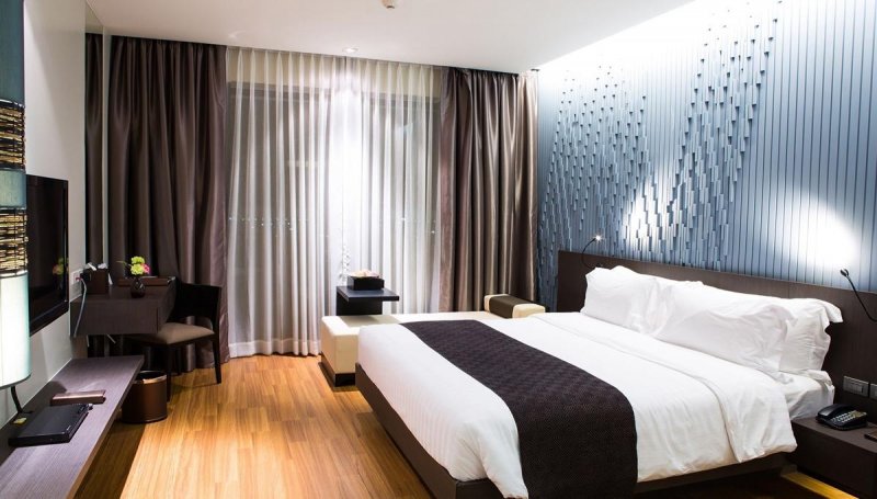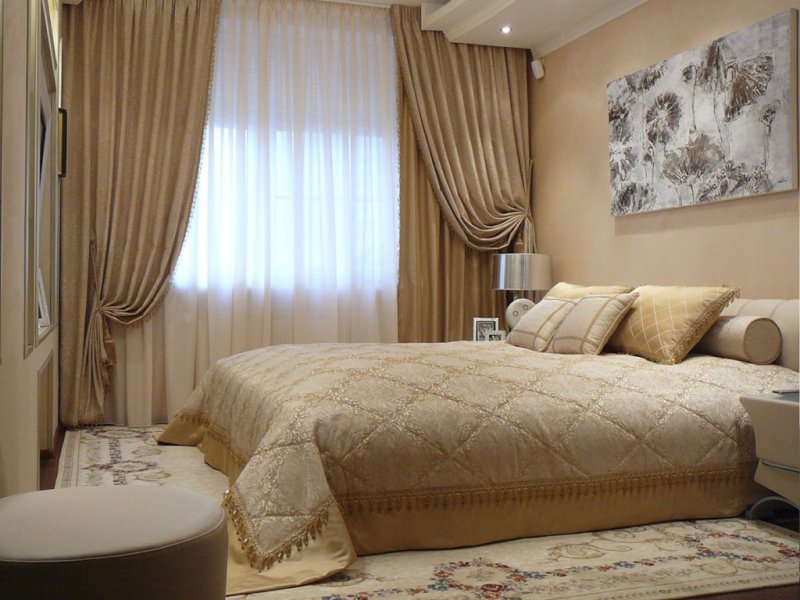 в маленькой спальне колер занавески часто делают одинаковым со стенами;