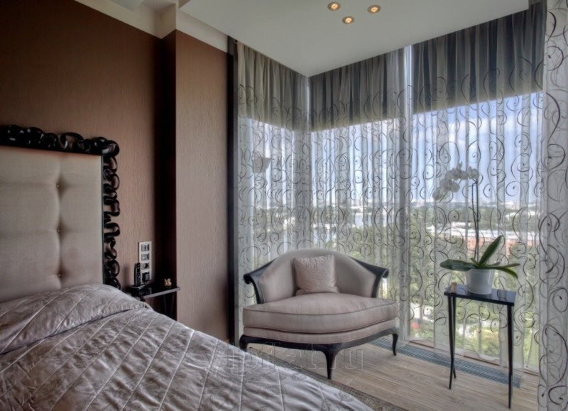 Если данный архитектурный выступ отделен от основного помещения текстильной драпировкой, желательно, чтобы по цвету, дизайну она совпадала или сочеталась с оконной.