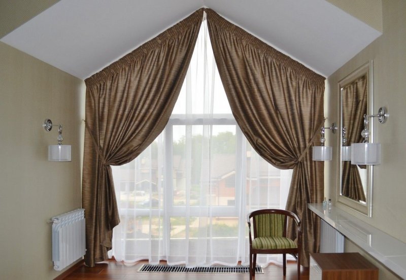шторами со множеством складок – в идеале они закрывают всю стенку, в угловом помещении – две смежных;