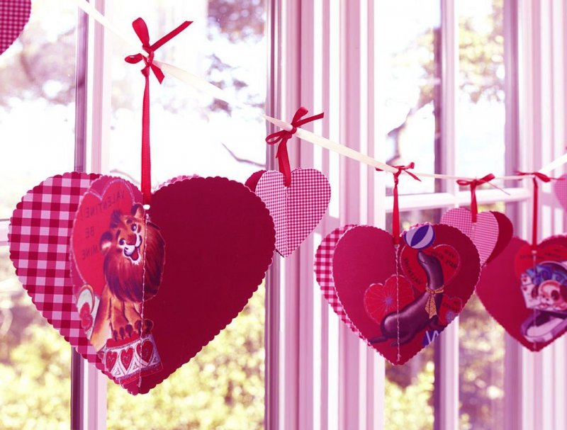 на 14-е февраля окошки декорируют сердечками, надписями «LOVE», ангелочками;