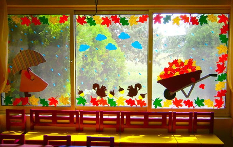 Праздничный оконный декор размещается не только на драпировках – им украшают рамы, стекла, откосы. Красиво оформлять данное место получится с использованием весьма различных предметов: мягких игрушек небольшого размера, наклеек, акварельных красок, вытинанок и др. Особенно часто подобный декор делается в детских садах, школах, помещениях, где проводятся соответствующие торжества.