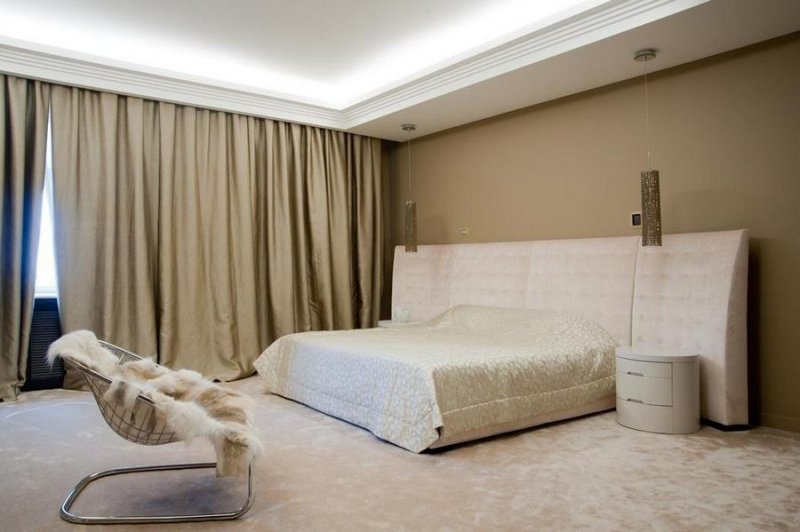 Главный плюс скрытой конструкции – она полностью спрятана в потолке, являясь при этом незаметной. Обычный карниз необходимо тщательно подбирать под различные элементы обстановки: декор потолка, мебель, саму штору и др. Скрытый же лишен таких недостатков – как видимая деталь интерьера он просто отсутствует, что «разгружает» комнату, делает ее просторнее. Еще одно достоинство – возможность монтажа скрытой подсветки, одновременно с карнизом. На потолочный предмет такого плана вешают любые виды штор – от совсем тоненьких до тяжелых, плотных. Важно лишь тщательно закрепить изделие на потолке, выбрать подходящий материал изготовления. Скрытый предмет придает комнате весьма эстетичный внешний вид.