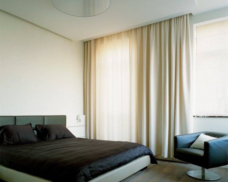 Такое оформление не дробит пространство по вертикали, что особенно полезно, когда помещение низкое. Для высоких, многоуровневых потолков изделие также подходит. Конструкцию не обязательно монтировать только вдоль стены с окном – она станет прекрасным разделительным элементом (в квартире-студии, комнате с эркером, нишей), при необходимости убираемым легким движением руки.