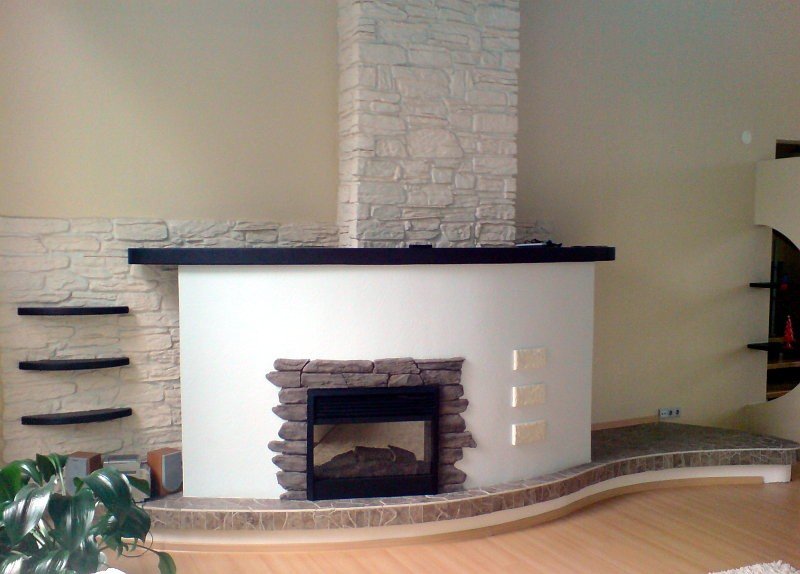 Оформление очага фальшивым камнем имеет ряд особенностей: