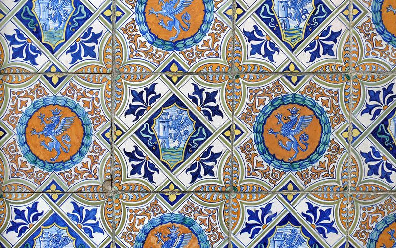 майолика – применяется с давних времен, по составу это усовершенствованная терракота, с нанесенным на нее рисунком, покрытая прозрачной глазурью. Цена материала высокая,