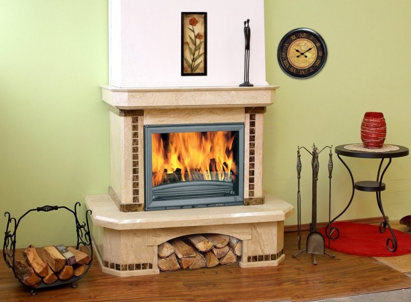 Цвет финишной отделки также имеет значение. Когда камин призван в первую очередь обогревать помещение, а не украшать его, предпочтительны максимально темные матовые тона. Чем более фактурной, рельефной выполняется поверхность, тем сильнее теплоотдача, а значит выше температура в помещении с такой печкой.