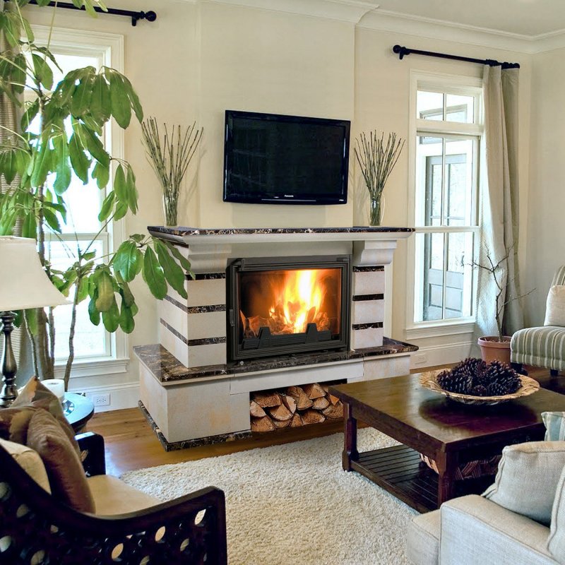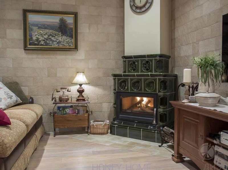 Печки различного вида встраиваются в очень разные интерьеры. Важно соблюдать целостность интерьера, подбирать приемлемую цветовую гамму. Камин часто является зонирующей деталью, позволяющей аккуратно разделить просторную комнату на две функциональные части. Наиболее часто камины встраивают в интерьеры классицизма, барокко, лофт, прованс, кантри.