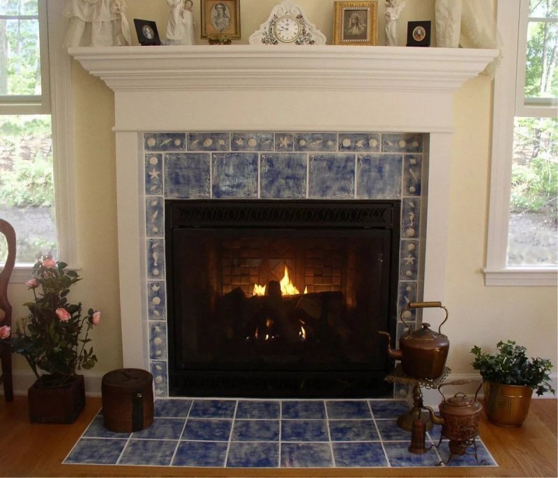 кафель – жароустойчив, отлично переносит температурные перепады, но на морозе материал быстро портится, осыпается. Для каминов предпочтительны матовые варианты – они не растрескиваются. Укладка производится с использованием жаростойких составов либо без клея – в металлическую рамку;