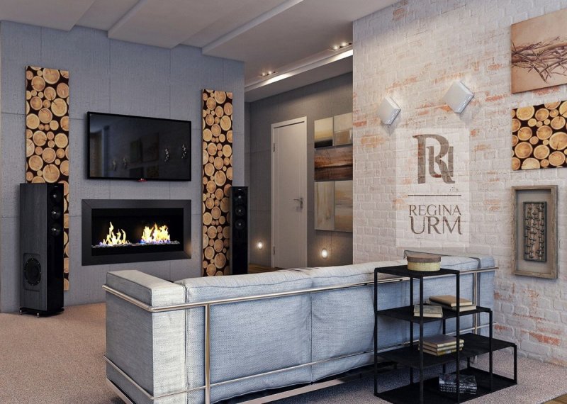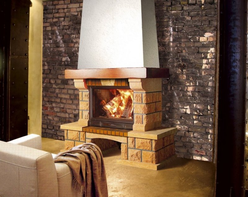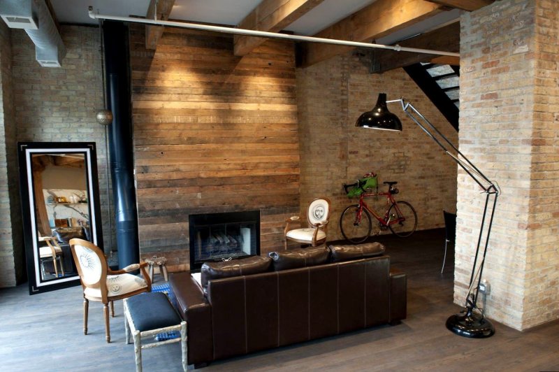 Лофт-очаг всегда оформляется «под старину», отделывается кирпичом, камнем, темным металлом, грубой древесиной, реже – штукатуркой, лепниной. Размещается конструкция обычно у стены, но допустимы островные, подвесные варианты, форма – прямоугольная, округлая, в виде бочки и др. Дымоход здесь не маскируется, а делается акцентным. Также очаг может напоминать слегка модернизированную «печку-буржуйку», расположенную в пустой нише.