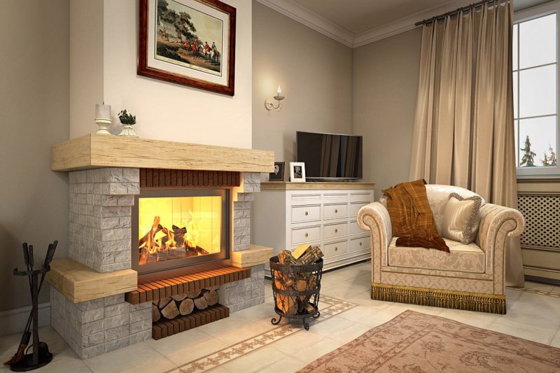 Камин всегда был и до сих пор остается «статусным» предметом, символизирующим роскошь, богатство. Но позволить себе такой настоящий либо бутафорский предмет сегодня смогли бы многие. Правильная облицовка камина позволит непринужденно вписать его практически в любой интерьерный стиль, создавая уникальную по красоте обстановку в оформляемом помещении. Содержание Особенности отделки Виды, способы отделки камина Оштукатуривание: преимущества, недостатки Облицовка камина плиткой – плюсы, минусы Отделка камина искусственным камнем – за и против Отделка натуральным камнем: положительные, отрицательные качества Обшивка металлом – преимущества, недостатки Как выбрать штукатурку для камина Как самостоятельно оштукатурить Какая плитка подходит для отделки камина Технология монтажа плитки своими руками Выбор искусственного камня для отделки Особенности работы с искусственным камнем при отделке камина Выбор натурального камня для облицовки камина Правила работы с мрамором, другим натуральным камнем Стилистические направления в отделке камина В английском стиле В стиле прованс В стиле кантри В классическом стиле В стиле хай-тек В этническом стиле В стиле лофт Варианты отделки фальш-каминов Заключение Особенности отделки Одно из важнейших требований к отделке настоящего камина – огнестойкость облицовочного материала. Конструкция состоит из очага (места, где горит огонь) и портала (декоративной внешней части) с дымоходом. Выполняется предмет чаще всего из клинкера – специального жаростойкого печного кирпича. Цвет финишной отделки также имеет значение. Когда камин призван в первую очередь обогревать помещение, а не украшать его, предпочтительны максимально темные матовые тона. Чем более фактурной, рельефной выполняется поверхность, тем сильнее теплоотдача, а значит выше температура в помещении с такой печкой. Виды, способы отделки камина Вариантов отделки портала существует несколько, каждый из них имеет свои положительные и отрицательные свойства. Наиболее часто очаг штукатурят с последующим окрашиванием, облицовывают декоративной керамической плиткой, природным либо искусственным камнем, обшивают листами металла. Сам портал часто оформляют дверцами из огнеупорного стекла, тяжелыми чугунными решетками, стальными заслонками. Чем теснее помещение, тем миниатюрнее делается декоративный очаг, тем более светлой выполняется его отделка. Оштукатуривание: преимущества, недостатки Отделка очага штукатуркой – процесс не сложный и не дорогой. Подойдет для сооружений, полностью выполненных из кирпича, бетона. Данное оформление не утяжеляет объект, потому дополнительно усиливать фундамент не нужно. Штукатурный слой, предназначенный для последующей чистовой отделки, немного отличается от декоративного варианта. При смене интерьера конструкцию легко перекрасить в другой цвет, соответствующий колеру обстановки. Минус такой отделки – при накладывании толстого слоя требуется армирование, а также длительная просушка. Облицовка камина плиткой – плюсы, минусы Очень часто камины облицовывают керамической плиткой, керамогранитом. Последний кладут как непосредственно на клей, так и на металлические профили. При помощи керамогранита легко замаскировать неровную кирпичную кладку, сколы, прочие дефекты поверхности. 