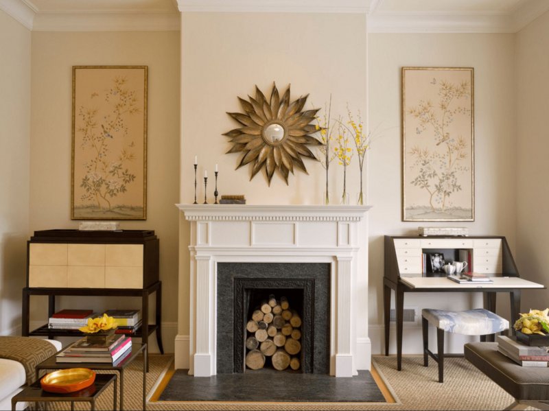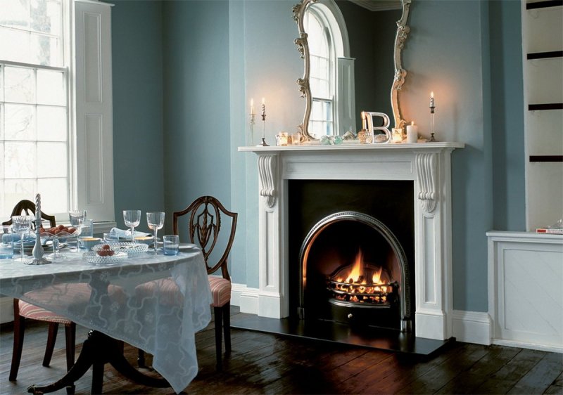 Чем теснее помещение, тем миниатюрнее делается декоративный очаг, тем более светлой выполняется его отделка.