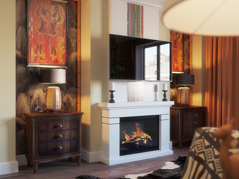 Не в каждом частном особняке получится обустроить настоящий камин, в городской квартире для его монтажа придется посетить несколько инстанций, составить проект, и с высокой долей вероятности получить отказ. Потому там, где оформить настоящий очаг невозможно, создают портал фальшивого. Огонь в нем нарисованный или из ткани, приводимой в движение при помощи воздуха, что иногда сопровождается звуком потрескивающих дров.
