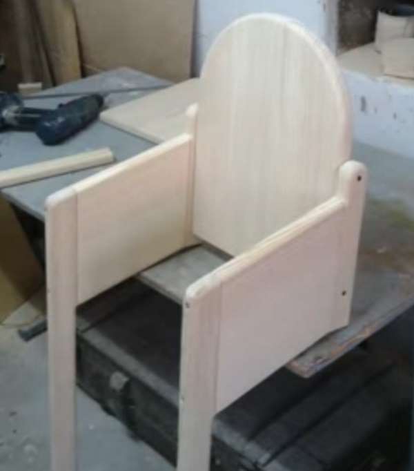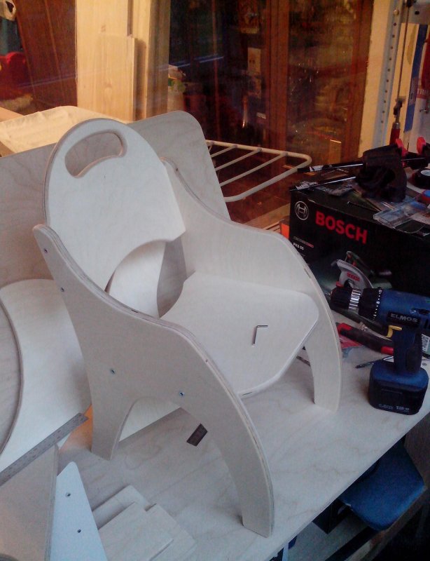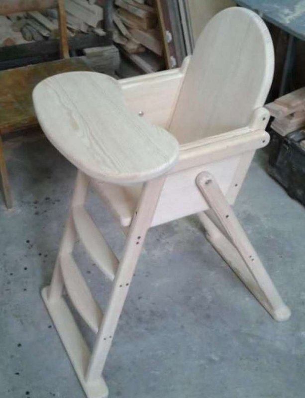 Когда в семье появляется новый маленький человек, самое время позаботиться о том, чтобы у него было все необходимое для комфортной, безопасной жизни. Если младенцу в его комнате вполне достаточно небольшой люльки и бельевого комода, то ребенку, который уже сидит, требуются и другие предметы. Сделать шкафчик, стол или хотя бы детский стульчик своими руками под силу любому родителю, имеющему минимальные столярные навыки. Содержание Преимущества создания своими руками Виды детских стульчиков Необходимые инструменты Выбор материала для изготовления Размеры, чертежи, схема Цвета, декор Мастер-классы с пошаговой инструкцией Изготовление обычного детского стула со спинкой Раскладной из фанеры Высокий детский стульчик для кормления Стул в виде машины Стул с изменяющейся высотой Конструктор стул-стол Заключение Преимущества создания своими руками Самостоятельное изготовление детской мебели имеет множество преимуществ: возможность сделать предмет, используя только экологически чистые материалы, выбранные по своему усмотрению; заметная экономия денежных средств (кроме случаев создания чрезмерно «навороченных» конструкций); можно использовать части старой мебели, других предметов, чтобы создать нечто новое; цветовую гамму, декор стульчика также легко подобрать под стилистику детской комнаты; изделие выходит добротным и уникальным, а фантазийная конструкция в виде машинки, домика, лошадки, собачки и др. понравится ребенку. Виды детских стульчиков Для детей разработано несколько видов стульев, в зависимости от назначения, возраста пользователя: миниатюрный стульчик со столиком – такой же комплект, как для взрослых. Подойдет детям, которым уже исполнилось полтора-два года. Выполняется из древесины, пластика, иногда имеет металлические ножки, другие детали, оснащается ремнями безопасности; подвесной вариант – одна из разновидностей складного, незаменима, когда места в доме очень мало. Конструкция такого стульчика – металлический каркас с жесткой сидушкой, спинкой, оснащенный съемным мягким чехлом. Изделие монтируется к «взрослому» столу при помощи зажимов, по методу рычага либо винтами. Предмет удобно брать с собой в поездки – он занимает мало места, весит в пределах трех-пяти кг., подойдет для детей от полугода, выдержит вес до 13-16 кг.; дорожный стульчик – это не стул в обычном понимании, а скорее система фиксации с ремнями безопасности, предотвращающая падение малыша. Изделие крепится к большому стулу со спинкой, жестким сидением. Запрещается устанавливать предмет на табуретки, барные конструкции; высокие раскладные модели – в сложенном виде занимают минимум места, легко собираются-разбираются, весят до пяти кг.; стул-трансформер – самый крупногабаритный вариант занимает примерно один метр квадратный. Сидения делаются легко моющимися, столешница – съемной, оснащенной бортиками. Ремни имеются не всегда. Уровней по высоте делается от одного до семи, чтобы изделие легко подстраивалось под любую высоту стола. Когда ребенок подрос, конструкцию разбирают, получая отдельно стоящие столик и стульчик; многофункциональный – разновидность трансформера, выполняющая роль стульчика, качелей, качалки. Легко складывается-раскладывается, занимает сравнительно немного места, выполняется из пластика или дерева, имеет подстав