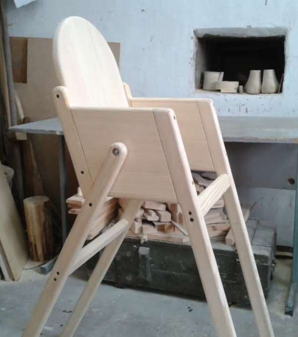 Стул, в котором удобно кормить ребенка, выполняется высоты, подходящей под обеденную столешницу. Само сооружение часто имеет вид усеченного конуса – так достигается максимальная устойчивость, ведь многие дети сильно вертятся, пытаются вылезти.