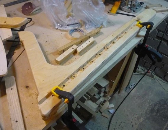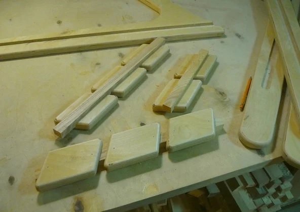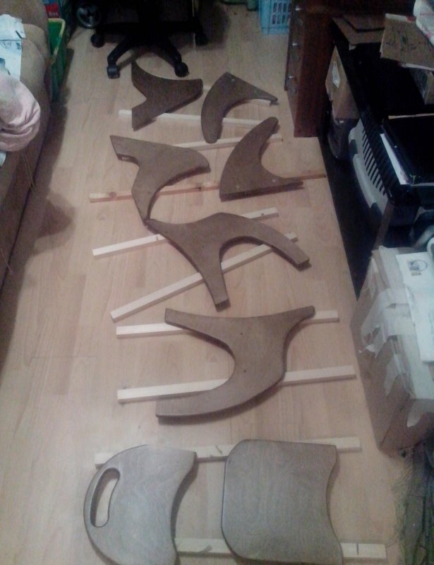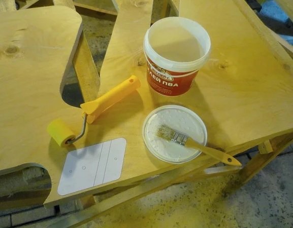вырезать бруски-перемычки для каркаса сидения, соединить с опорными деталями при помощи саморезов и клея;