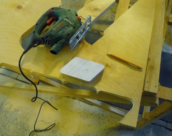 Для создания изделия потребуется фанера, толщиной 15 мм, дрель, электролобзик, которым выпиливаются детали: