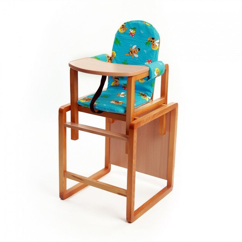 многофункциональный – разновидность трансформера, выполняющая роль стульчика, качелей, качалки. Легко складывается-раскладывается, занимает сравнительно немного места, выполняется из пластика или дерева, имеет подставки для бутылочки, чашки, упор для ног, столешницу. В некоторых моделях есть функция изменения наклона спинки, высоты подножки. Изделие подойдет детям от года до пяти лет.