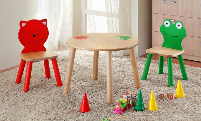 миниатюрный стульчик со столиком – такой же комплект, как для взрослых. Подойдет детям, которым уже исполнилось полтора-два года. Выполняется из древесины, пластика, иногда имеет металлические ножки, другие детали, оснащается ремнями безопасности;