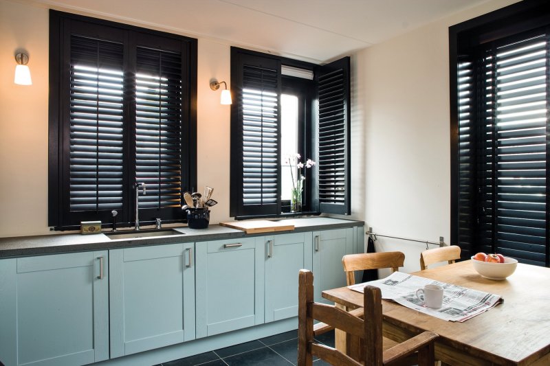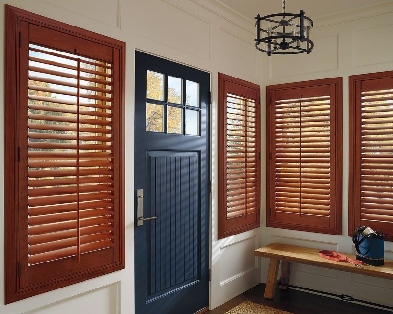 Ставни применяют не только снаружи. В самом помещении их используют в качестве штор, что вдобавок дает варианты оформления интерьера. Этот вид шаттерсов удобнее регулируется для защиты от солнца, однако большая часть функций обычных ставней, к сожалению, не предусмотрена. Среди материалов лучше предпочесть пластик или дерево. Пластиковые ставни легкие и в то же время намного более прочные, чем картон и бумага. Пластик отличается низкой ценой и удобством в эксплуатации. Дерево известно своей универсальностью в плане совместимости со всевозможными направлениями и стилями. Бумага и картон хорошо защищают от солнца, однако уступают двум вышеописанным материалам — теряют форму под воздействием влаги, могут сломаться из-за одного неаккуратного движения и, даже несмотря на большой выбор цветов, не подойдут к стильному интерьеру, так как быстро выгорают.