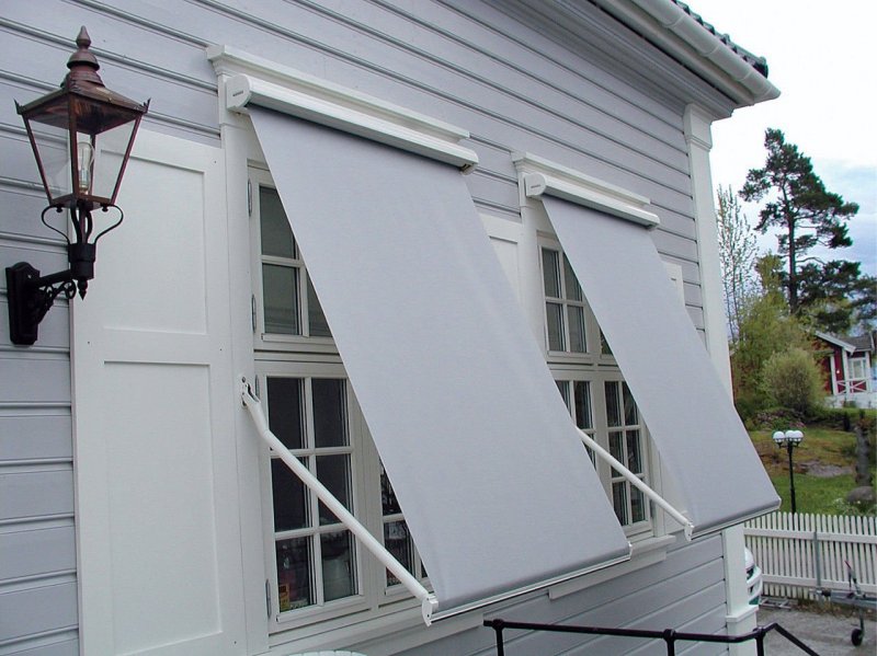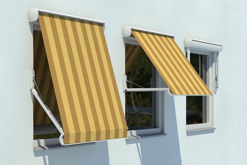 При подъеме они создают навес, что и является их основной особенностью. В последнее время популярность приобрела обычная прямоугольная форма — практически по всему Средиземноморью и в регионах, похожих по климату. Увеличенный размер и возможность регулирования длины превращают ставни-козырьки в полноценное укрытие от солнца для площади размером с большой балкон. Более традиционные версии завес обычно обладают декоративной формой и расцветкой. Есть полностью поднимающиеся створки и варианты со складывающимся полотном. В обоих случаях помещение остается защищенным от солнца, и в то же время открывается вид на улицу. Самое широкое распространение получили решетчатые козырьки с верхним креплением полотна. В жаркие дни ставень поднимают и фиксируют на распорке, а когда температура спадает, то створку опускают и закрывают на замки.