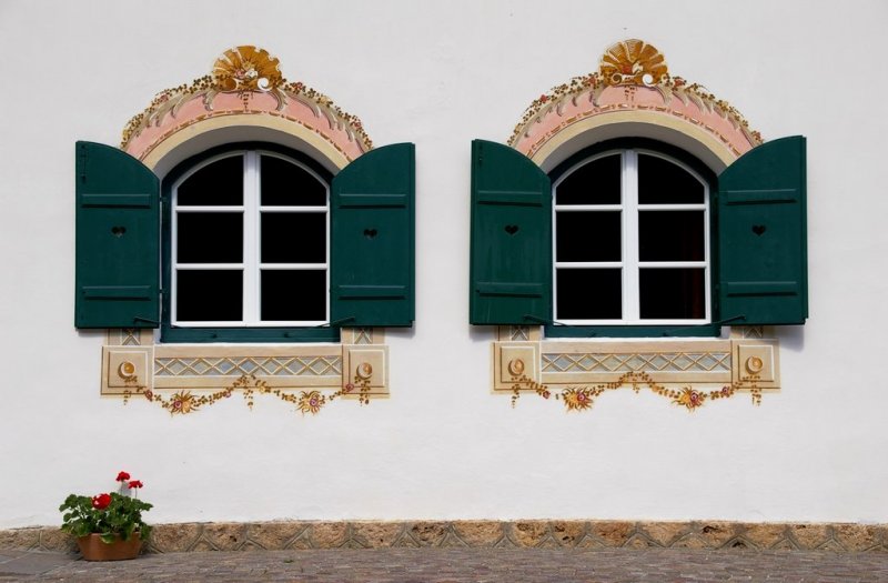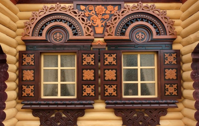 Верное решение для оформления домов в древнерусском стиле. Окна с такими ставнями обязательно украшают декоративными резными наличниками. Притом допускаются ярко выраженные формы. Резные створки обычно имеют сложный абстрактный рисунок или натуралистичный с растениями, животными и людьми. Деревянный дом изменится до неузнаваемости, если установить на него такую композицию. Однако у декоративных вариантов есть существенный недостаток — ослабление защиты от солнечных лучей. Поэтому лучше подбирать глухие створки с рельефным орнаментом. Несмотря на связь с русскими традициями, резные ставни популярны не только в России. Такие делают также в Европе и некоторых горных регионах остальной части мира. Ажурные ставни можно увидеть на домах в старинной скандинавской стилистике. В Европе резные шаттерсы встречаются на фахверковых домах и старых зданиях городов бывшего Ганзейского союза.