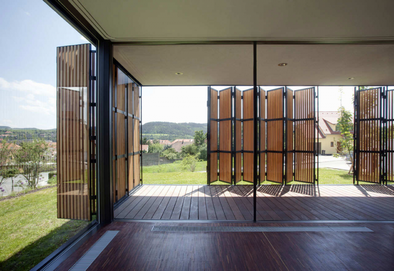 Из вертикальных и горизонтальных складных конструкций делают также ставни-террасы — очень красивый архитектурный объект.
