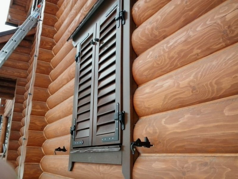 Для производства в основном применяют оцинкованную и нержавеющую сталь. Обычные щитовые варианты прекрасно подходят в качестве противовзломной защиты. В случае длительного отсутствия оконные проемы следует закрывать именно такими створками. В других ситуациях устанавливают филенчатые или ставни-жалюзи. Первый подтип представляет собой створки с несколькими пластинами прямоугольной или квадратной формы. Второй вариант выполняют из металлических периметров и продолговатых ламелей между стойками. Ставни из металла обустраивают внешней или внутренней запорной системой, обычно с сейфовыми замками. Стильный современный вид, надежность в плане защиты от воров и легкую установку относят к числу главных преимуществ металлических конструкций. В то же время они тяжелые и плохо скрывают появляющиеся на покрытии недостатки.