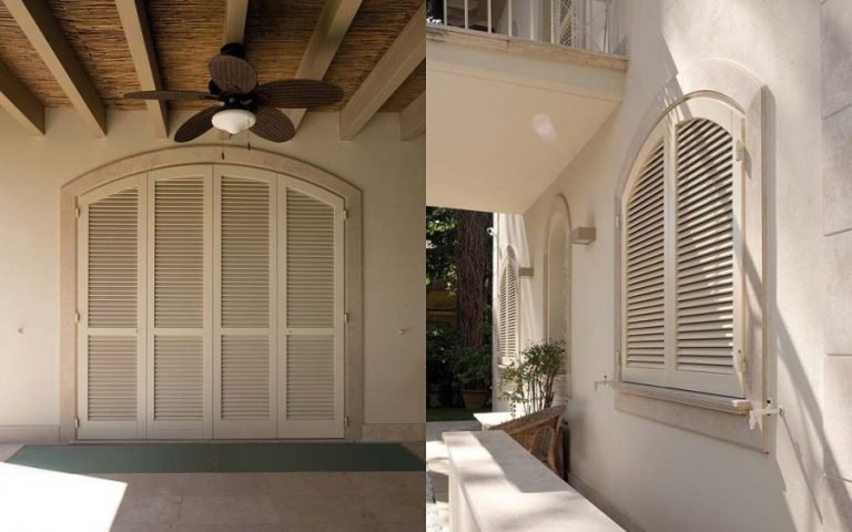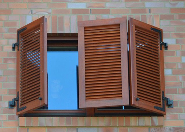 Системы с двумя полотнами по обеим сторонам выглядят более привлекательно, так как сохраняется принцип симметрии. Двустворчатые ставни во многих случаях лучше по эксплуатационным качествам, поэтому и применяются чаще. Запорный механизм соединяет дверцы посередине, соответственно, конструкция удобнее фиксируется в закрытом положении и смотрится эстетичнее в плане современного дизайна. Двустворчатые разновидности бывают распашными, складными (сборными), комбинированными и т. п. Сборные створки монтируют на окна любых размеров. При этом у владельцев жилья окажется много вариантов применения. Полотно окна можно оставлять полуоткрытым, освобождать от ставней полностью или частично, есть также возможности для создания полутени. Комбинированные варианты обладают высокими эстетическими качествами и обеспечивают надежную защиту.