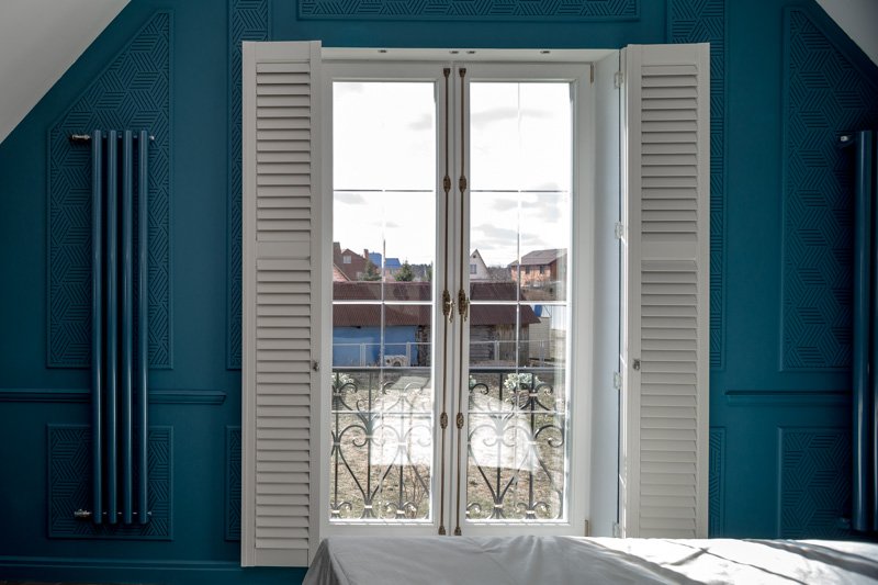 Внутри помещения ставни-купе экономят много пространства, особенно если там стоят большие панорамные окна.