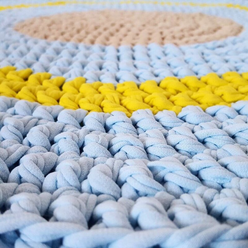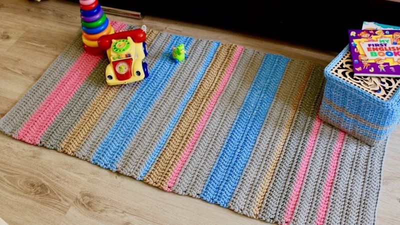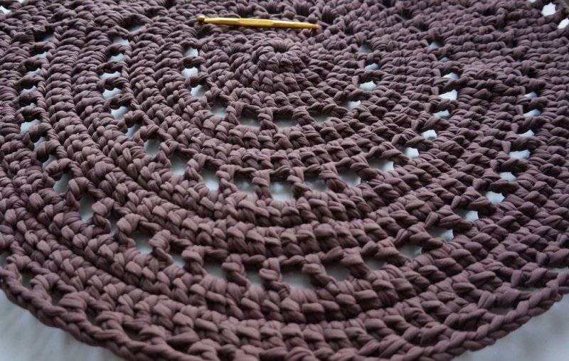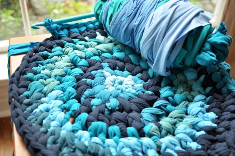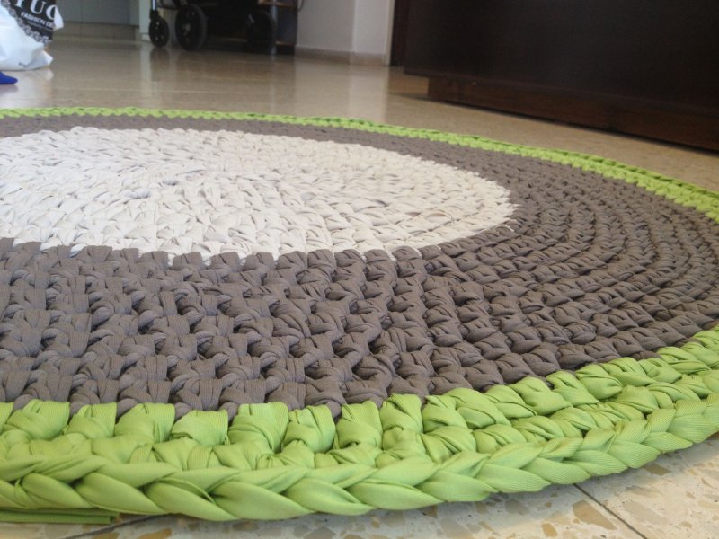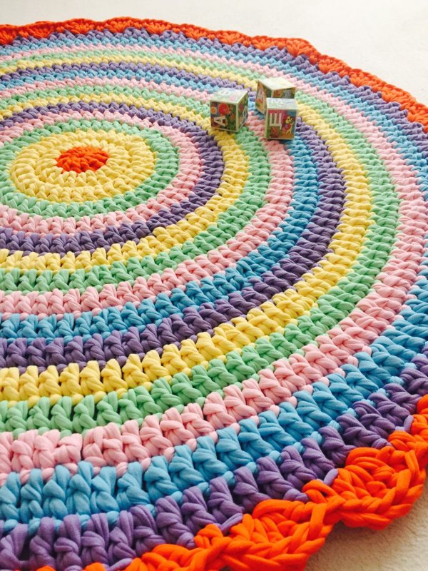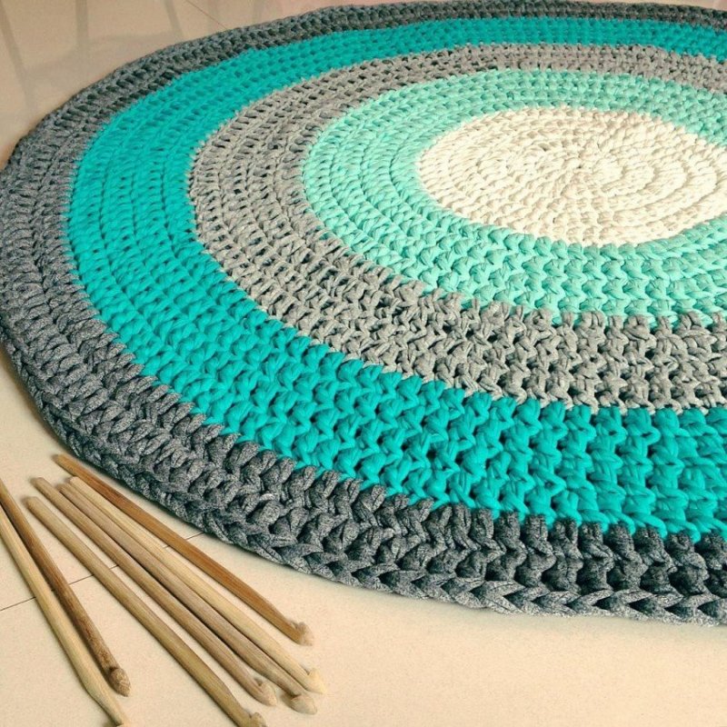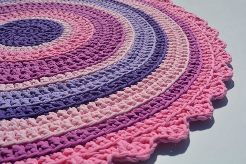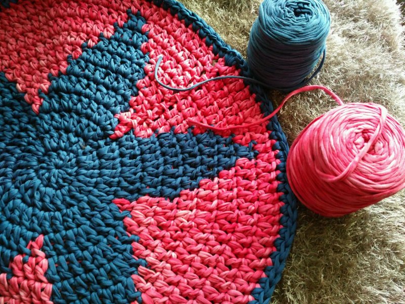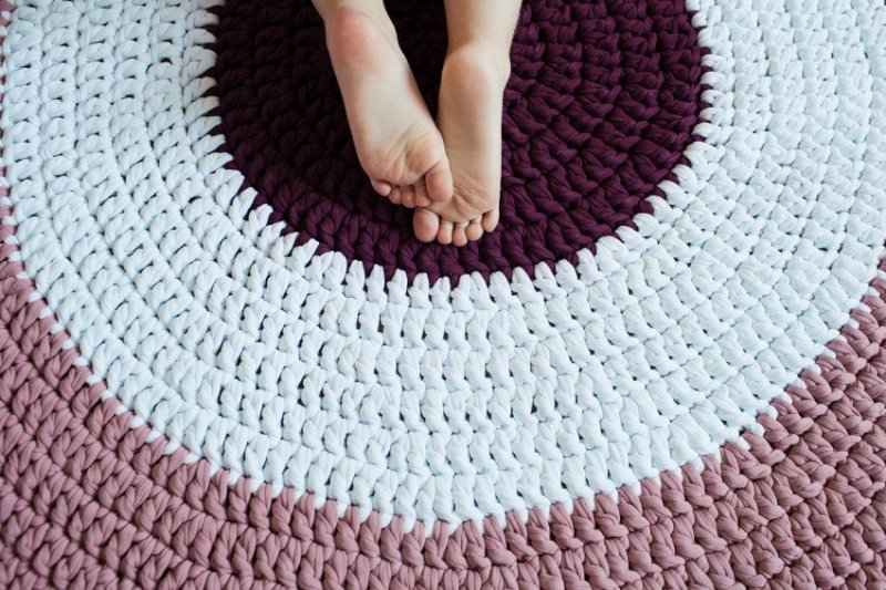 «Футболочная» пряжа – красивый, практичный материал, подходящий для изготовления оригинальных половиков, других предметов декора. Самое простое изделие для дома сможет выполнить даже ребенок, имеющий минимальные навыки вязания. Советы и мастер-классы по вязанию ковриков своими руками легко найти на сайтах, посвященных рукоделию и домоводству.
