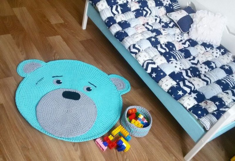 в детскую – пол в комнате ребенка является местом для игр, потому без множества ковров здесь не обойтись. Предмет обычно выполняют пестрым, очень ярким;