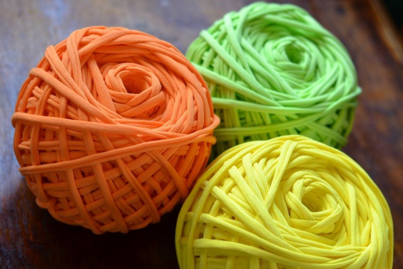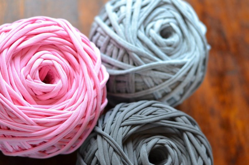 Чтобы начать делать пряжу, от трикотажного изделия отрезаются все лишние места – пройма, подвороты, декор и др. Оставшаяся часть нарезается по спирали, полосой, с шириной полтора-два см. Во время сматывания ленты в клубок, она самопроизвольно свернется жгутом.
