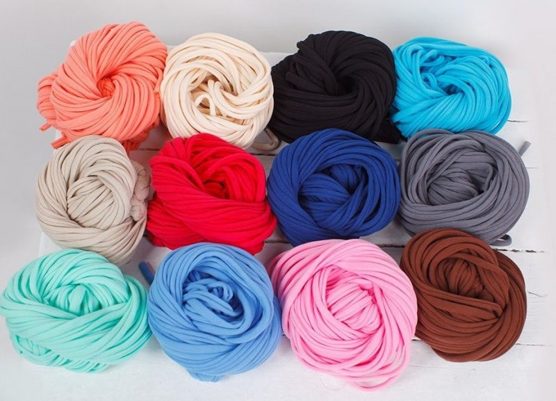 Трикотажную пряжу обычно производят из турецкого трикотажа высшего качества. Выпускается два варианта: первичного и вторичного производства. Отличаются эти два вида способом нарезки сырья. Изделия из первичной пряжи идеально гладкие, а сам материал выполнен из цельного трикотажного полотна. Вторичную делают из остатков трикотажа, в том числе некондиционного, потому незначительное наличие узелков, непрокрасов, жестких соединений не считается браком. Отличия по колеру, блеску, характеристикам прочности обоих материалов совсем незначительны.