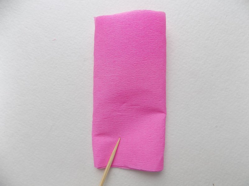 вначале нужно сделать заготовки – это одно основание из креповой бумаги, размером 8 на 8 см, шесть элементов 3 на 8 см, семь деталей 4 на 8 см;