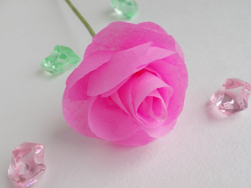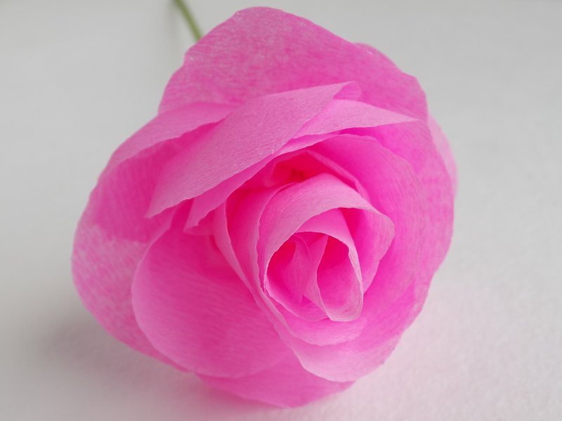 Более «сложная» роза выглядит реалистичнее, на ее выполнение потребуется немного больше времени. Для изготовления понадобится: розовая (красная, оранжевая, белая, кремовая либо другая красивая) бумага, чтобы сделать сами лепестки, травянисто-зеленая для чашелистиков. Также пригодится клей-пистолет, проволока или палочка для стебля, зубочистки, чтобы «крутить» лепестки, ножницы для резки бумаги, тонкие нитки.