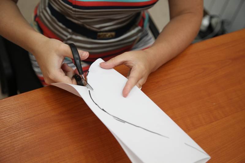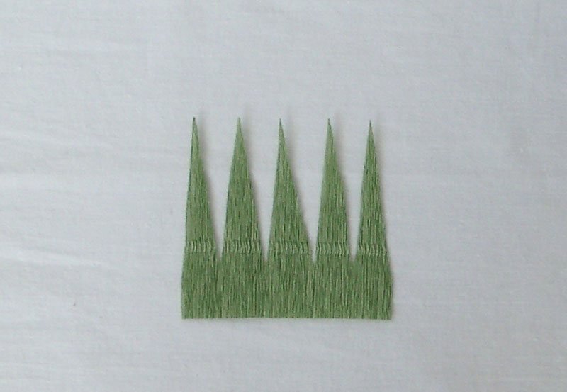 после «сооружают» чашелистик – для этого берут деталь 8 на 9 см, нарезают углами или зубцами, оставляя полтора сантиметра от края;