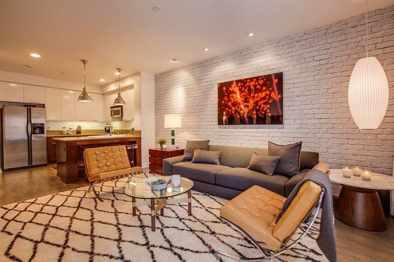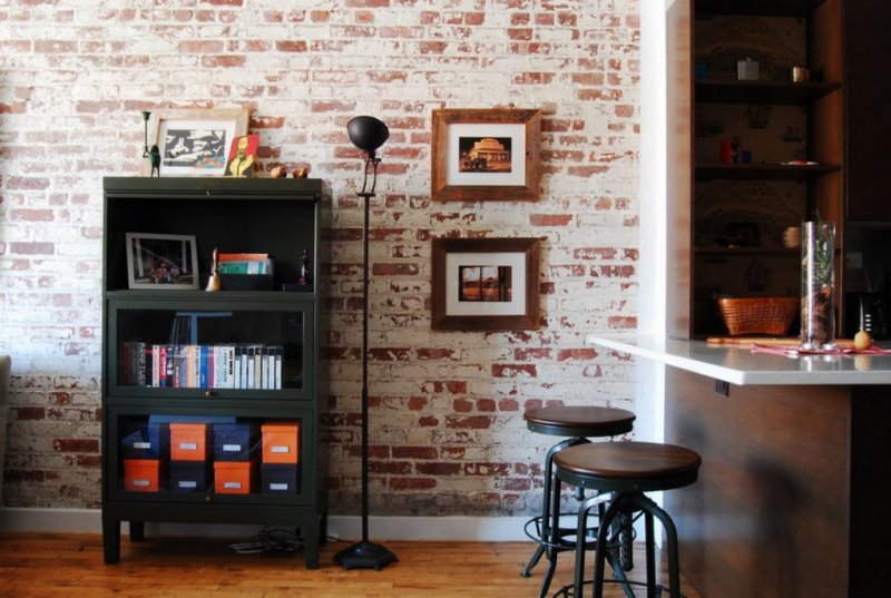 Владельцам кирпичного жилья оформить внутренние стены просто, достаточно зачистить швы, обработать имеющуюся поверхность грунтовкой и краской. Для жильцов блочных и панельных многоэтажных домов лучше использовать отделку, имитирующую кирпич. И хотя некоторые дизайнеры высказывают мнение, что оригинальному стройматериалу сложно найти альтернативу, но во многих случаях обои являются единственным возможным решением. Например, невозможно применить искусственный камень: