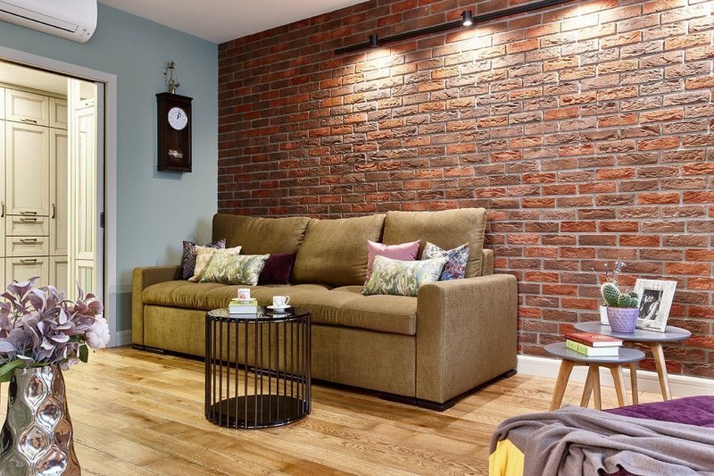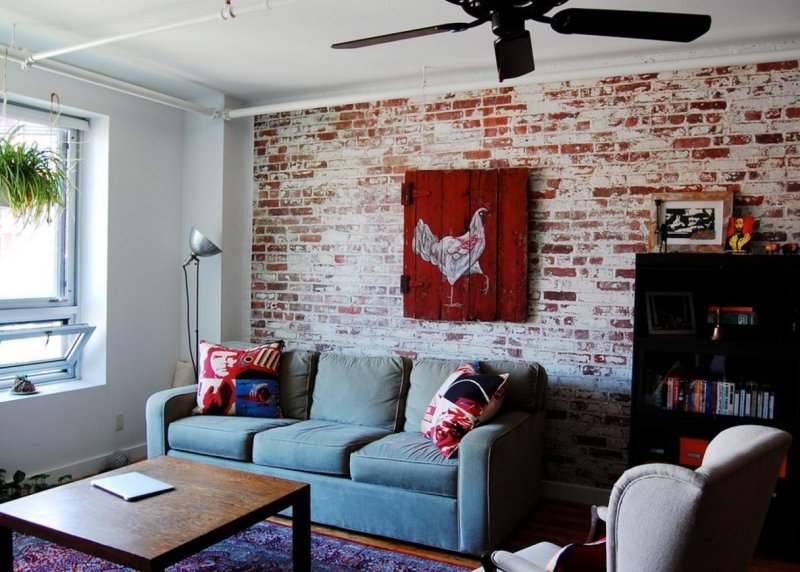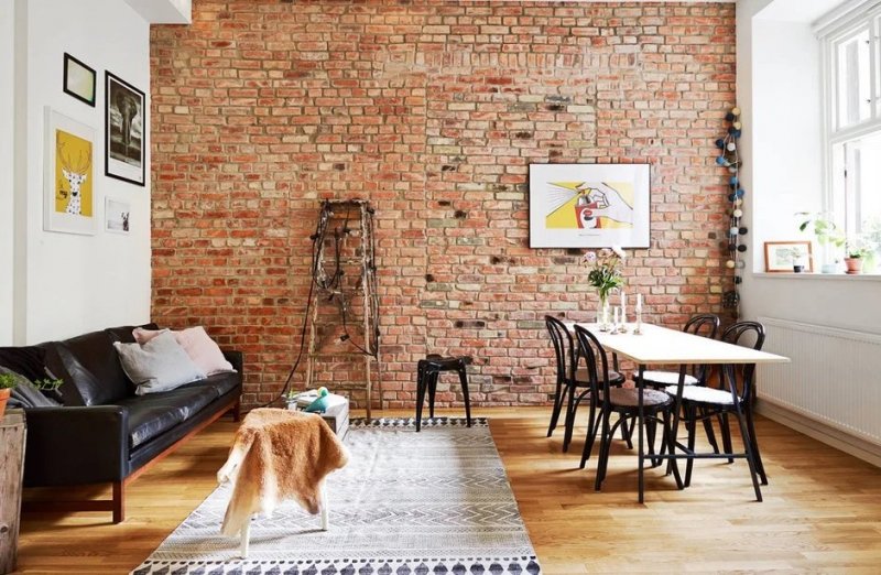 Кирпичная кладка уже давно используется для внутреннего оформления домов и квартир. Она наиболее характерна для стилей лофт и эклектика, отлично дополняет поп-арт, скандинавское, этническое направление. Самый простой способ получить в интерьере подобную стену – оголить имеющуюся поверхность. Однако не всегда при строительстве жилых сооружений применяется искусственный камень, в этом случае прибегают к его имитации, например, устанавливают пластиковые панели, клинкерную плитку, обои под кирпич.