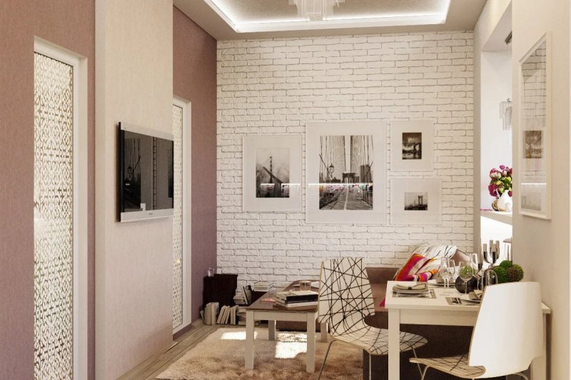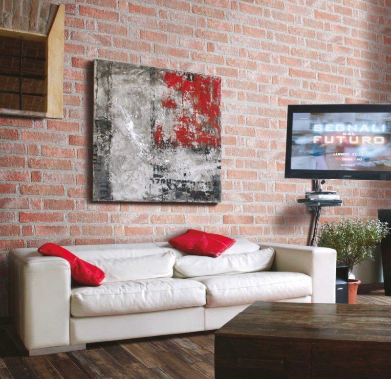 Кирпичная кладка уже давно используется для внутреннего оформления домов и квартир. Она наиболее характерна для стилей лофт и эклектика, отлично дополняет поп-арт, скандинавское, этническое направление. Самый простой способ получить в интерьере подобную стену – оголить имеющуюся поверхность. Однако не всегда при строительстве жилых сооружений применяется искусственный камень, в этом случае прибегают к его имитации, например, устанавливают пластиковые панели, клинкерную плитку, обои под кирпич. Содержание Отделка стен обоями под кирпич: преимущества и недостатки Виды обоев под кирпич Виниловые Бумажные С 3-д эффектом Флизелиновые Цветовые решения и стиль В стиле лофт Скандинавский стиль Прованс Шебби-шик Применение в интерьере различных комнат Как правильно комбинировать кирпичные обои Заключение Отделка стен обоями под кирпич: преимущества и недостатки Владельцам кирпичного жилья оформить внутренние стены просто, достаточно зачистить швы, обработать имеющуюся поверхность грунтовкой и краской. Для жильцов блочных и панельных многоэтажных домов лучше использовать отделку, имитирующую кирпич. И хотя некоторые дизайнеры высказывают мнение, что оригинальному стройматериалу сложно найти альтернативу, но во многих случаях обои являются единственным возможным решением. Например, невозможно применить искусственный камень: В малогабаритных помещениях, так как объемный материал съедает пространство; В случае, когда несущие перегородки неспособны выдержать существенную нагрузку, оказываемую стройматериалом; При ограниченном бюджете, стоимость облицовочного сырья, как и цена работы, очень высока; При сжатых сроках монтажа. Процесс укладки очень длительный и трудоемкий. К преимуществам использования обоев, имитирующих кирпичную кладку, можно отнести следующее: Незначительный вес, что позволяет клеить их на любые по прочности перегородки и конструкции; Простоту выполнения отделочных работ; Легкий демонтаж; Невысокую стоимость облицовочного материала; Существенный выбор расцветок, изображений; Сохранение полезной площади. Из недостатков можно выделить: Ровную поверхность, которая указывает на имитацию, фальшивку; Низкую водостойкость, что не позволяет использовать их в ванной, в помещениях с повышенной влажностью; Некоторые виды накапливают пыль; Слабая устойчивость к механическим повреждениям. Виды обоев под кирпич Кирпичная кладка в интерьере хоть и выглядит грубой, но привлекает к себе внимание. Такая облицовка отлично дополнит стиль лофт, хай-тек, минимализм, фьюжн. Сплошная или частично оформленная под кирпич стена создает ощущение надежности и безопасности. При этом выбрать обои намного проще, чем найти соответствующий камень. В отличие от оригинального материала, имитация не охлаждается, при соприкосновении не кажется холодной, что позволяет использовать ее даже при оформлении детской или спальни. Существует несколько типов обоев, которые отличаются между собой по цвету, фактуре, рисунку, имеющему вид крупных или мелких кирпичиков. Однако главным критерием, по которому их разделяют, остается материал, используемый при изготовлении. Существуют бумажные, виниловые, флизелиновые модели. Каждый вариант отличается качественными характеристиками, имеет свои преимущества и недостатки. Виниловые Вини